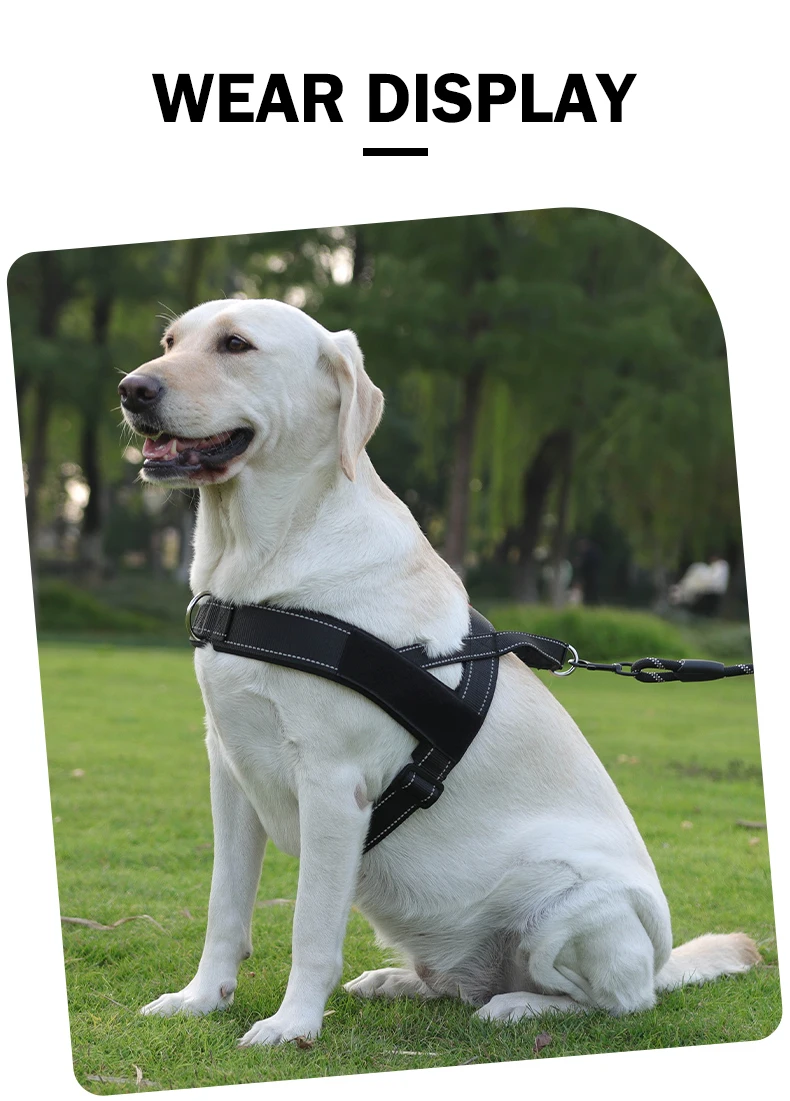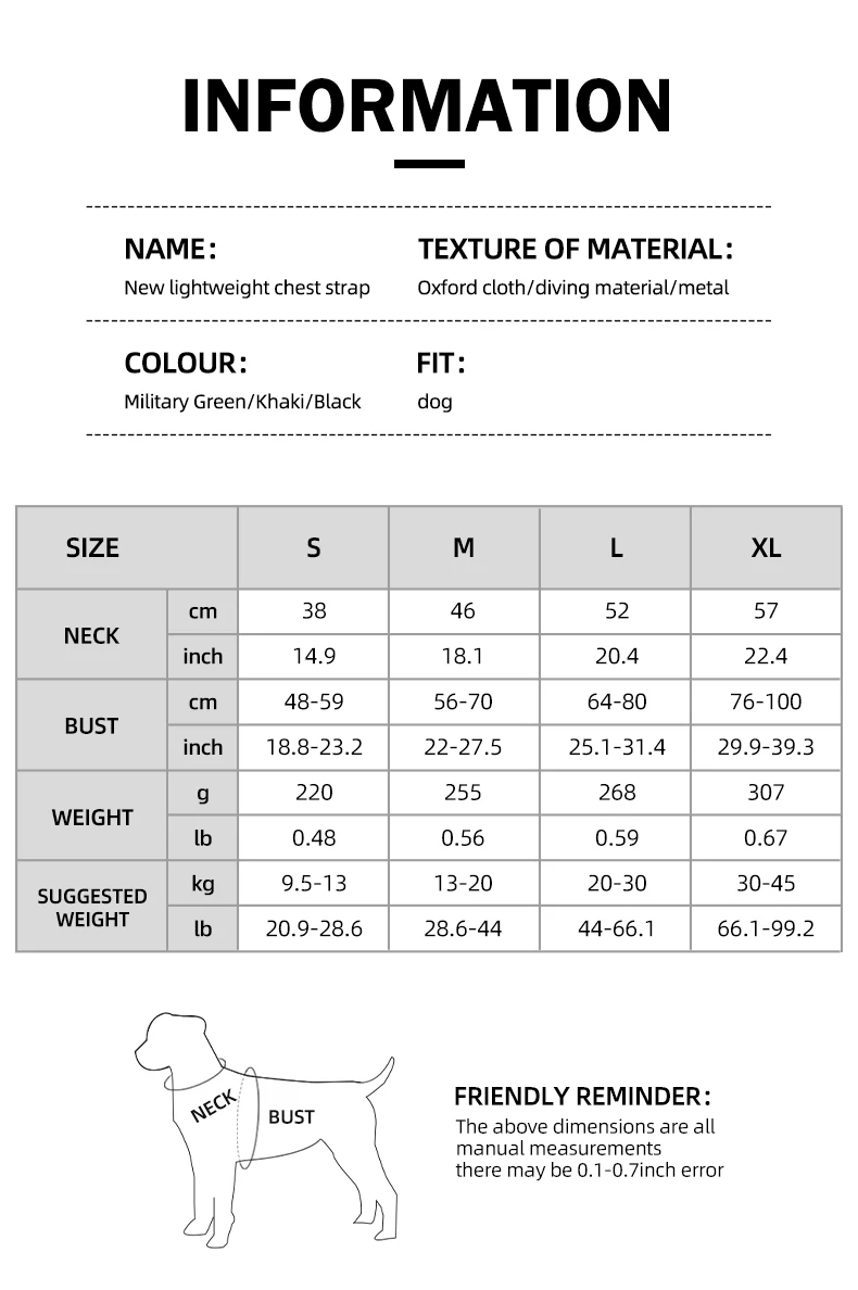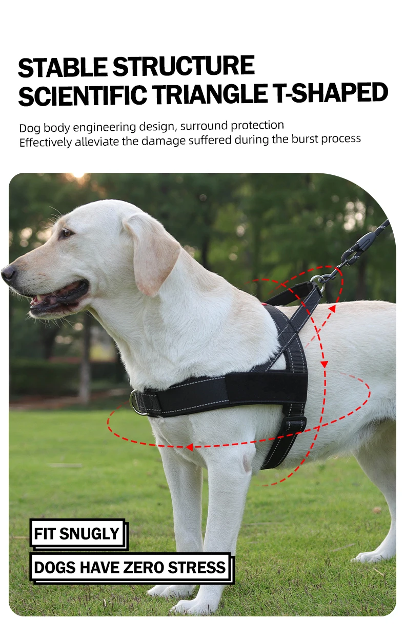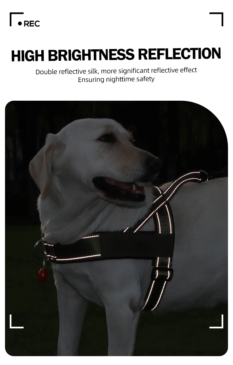 1. Material: neck circumference weaving width 5CM, neoprene, nylon vermilion single-sided reflective webbing (thickened), comfortable and skin-free, tensile and durable, suitable for large dogs, intimate handle design, handle control, anti-impact protection