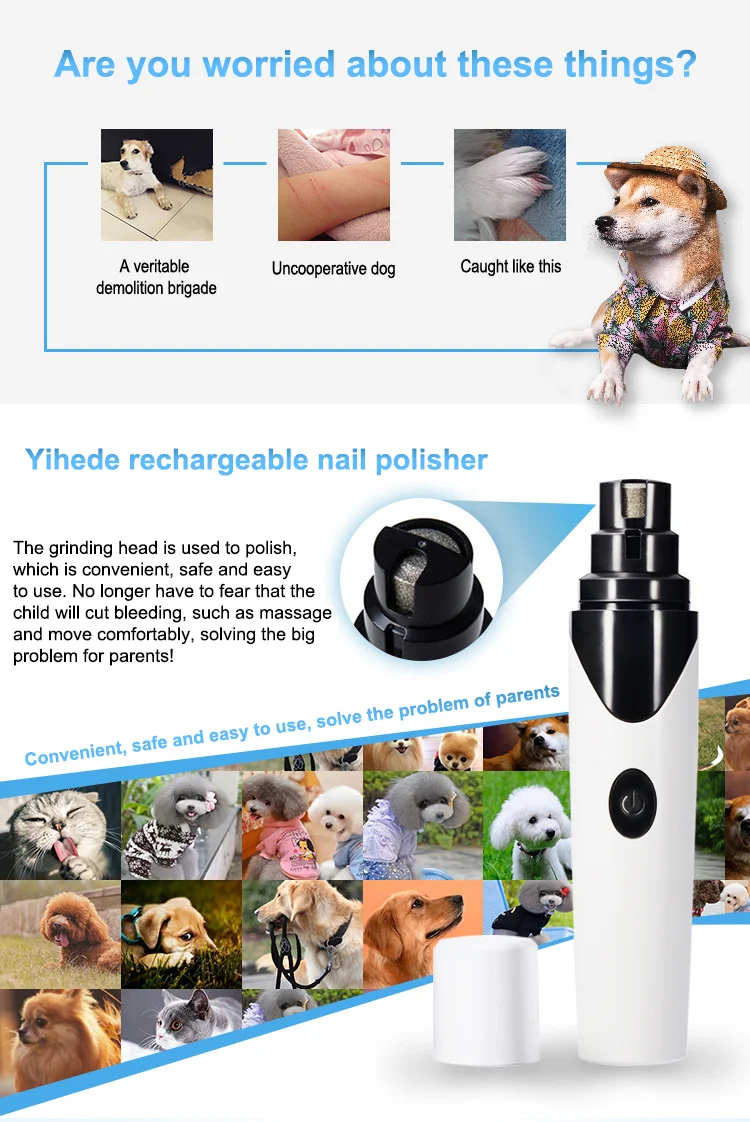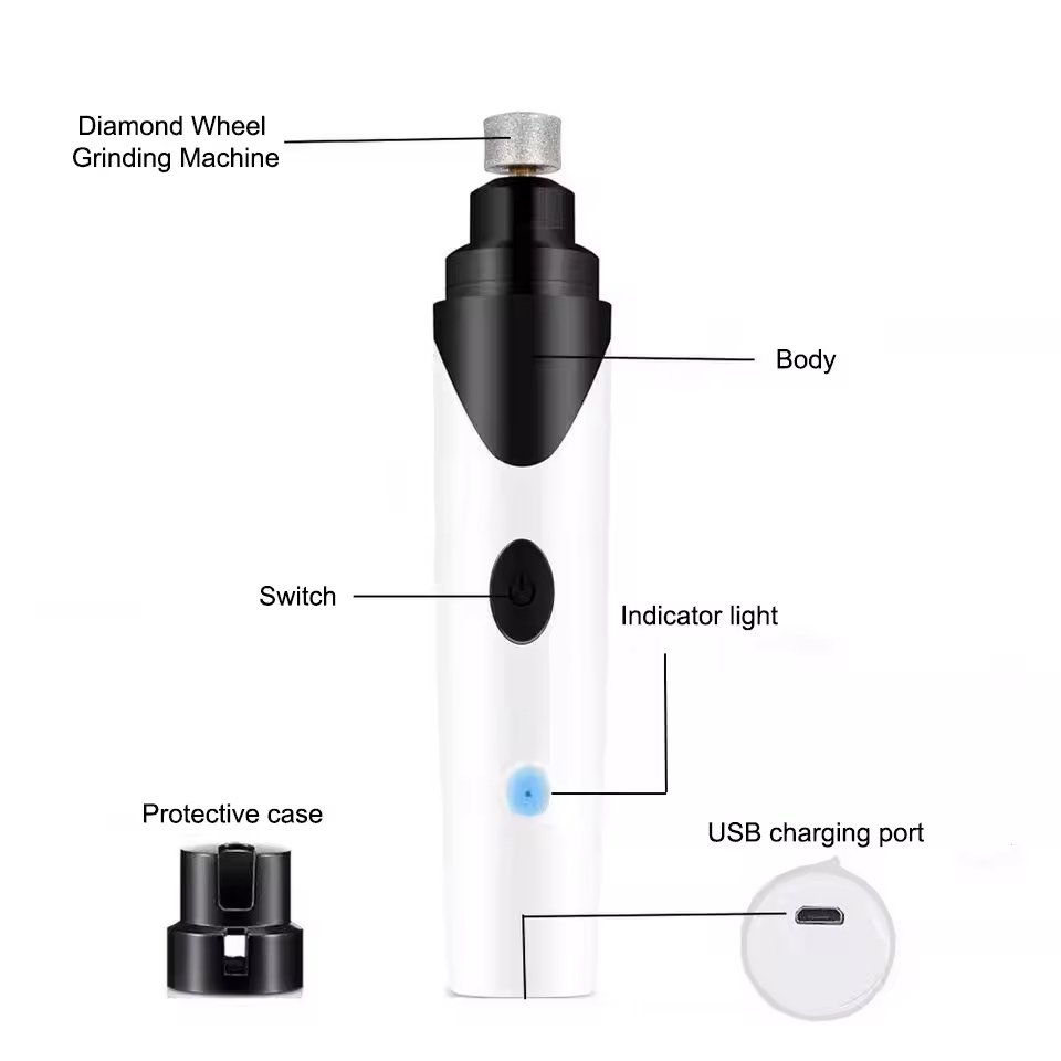 GPC0008 Rechargeable New Mini Vibration Low Noise Free Led Electric Grinder Pet Nail Clippers and Trimmer Pet Pedicure