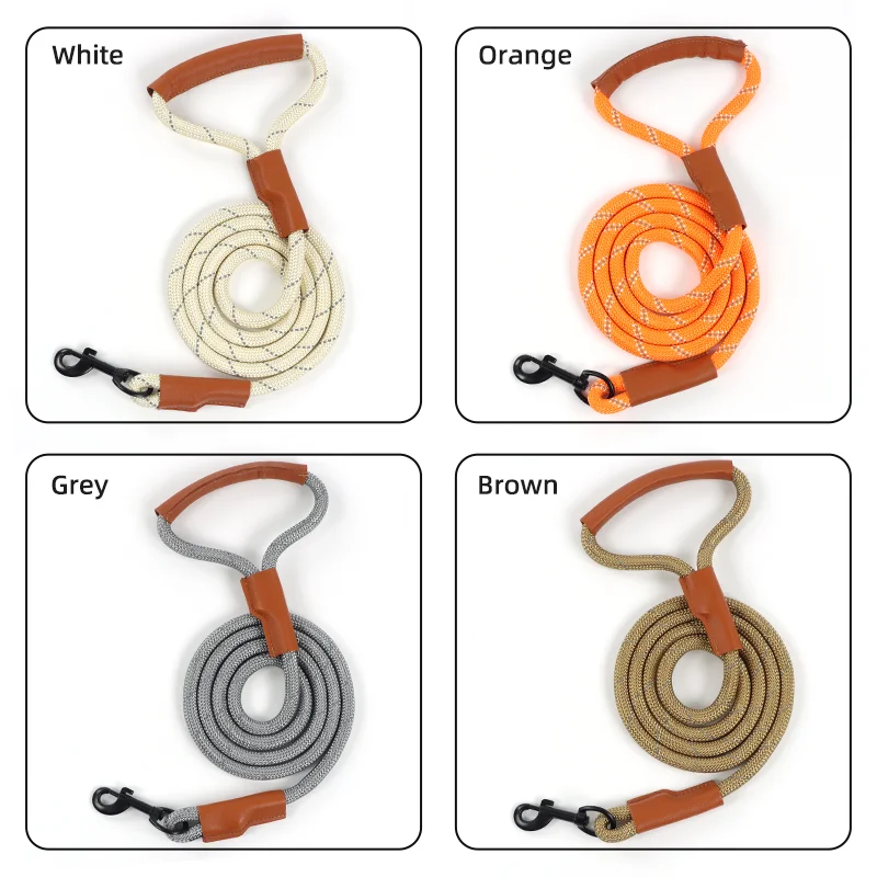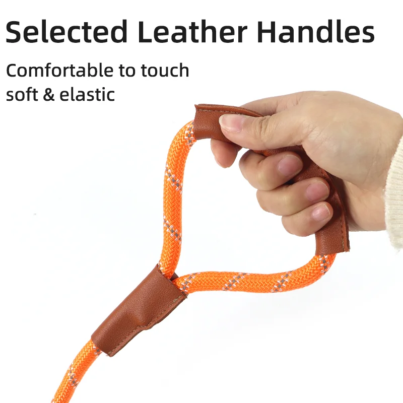 Product selling points: 1. bolder in color, more vivid, beautiful and versatile. 2. Leather design is adopted for the handshake position, which makes the grip comfortable and beautiful. 3. The rope body is inlaid with reflective silk, which is more eye-catching when exposed to light at night.