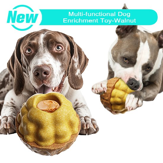 8[Versatile Usage]This toy is suitable for various environments: it can be used as an indoor interactive toy, crate training toy, and outdoor activity toy. Its Walnut-shaped design is ball-like with smooth contours, ensuring it is safe for your dog to use without causing harm;