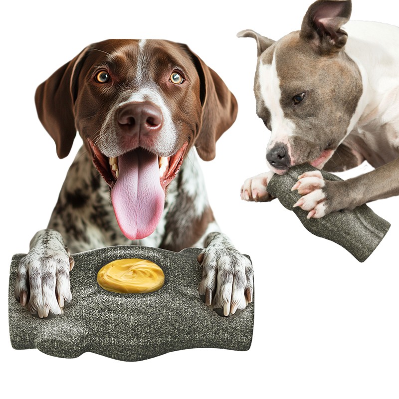 1 [Innovative Design Dog Toy]This is a versatile and perfectly designed indoor interactive dog toy. Fill the food compartments with mixtures such as meat paste, yogurt, pumpkin, meat chunks, or cheese, then freeze them in the refrigerator. After freezing, insert the food compartment into the toy, allowing your dog to lick and enjoy. This activity keeps your dog engaged, enriches their daily life, and expends excess energy.The toy features grooves on both ends that can hold spreadable treats like peanut butter. Additionally, it serves as a durable chew toy, providing a variety of experiences and enjoyment for your dog with just one product;