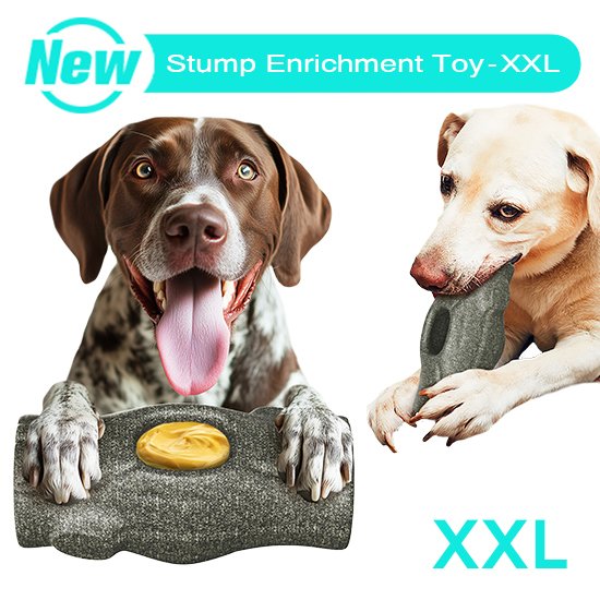 3 [Designed Specifically for Dogs’ Natural Habits] The toy features a tree-stump-inspired design with a cylindrical structure, allowing dogs to comfortably use it. When licking frozen food blocks or peanut butter applied to the grooves, dogs can press down on the sturdy base with their paws for a more stable and enjoyable experience;