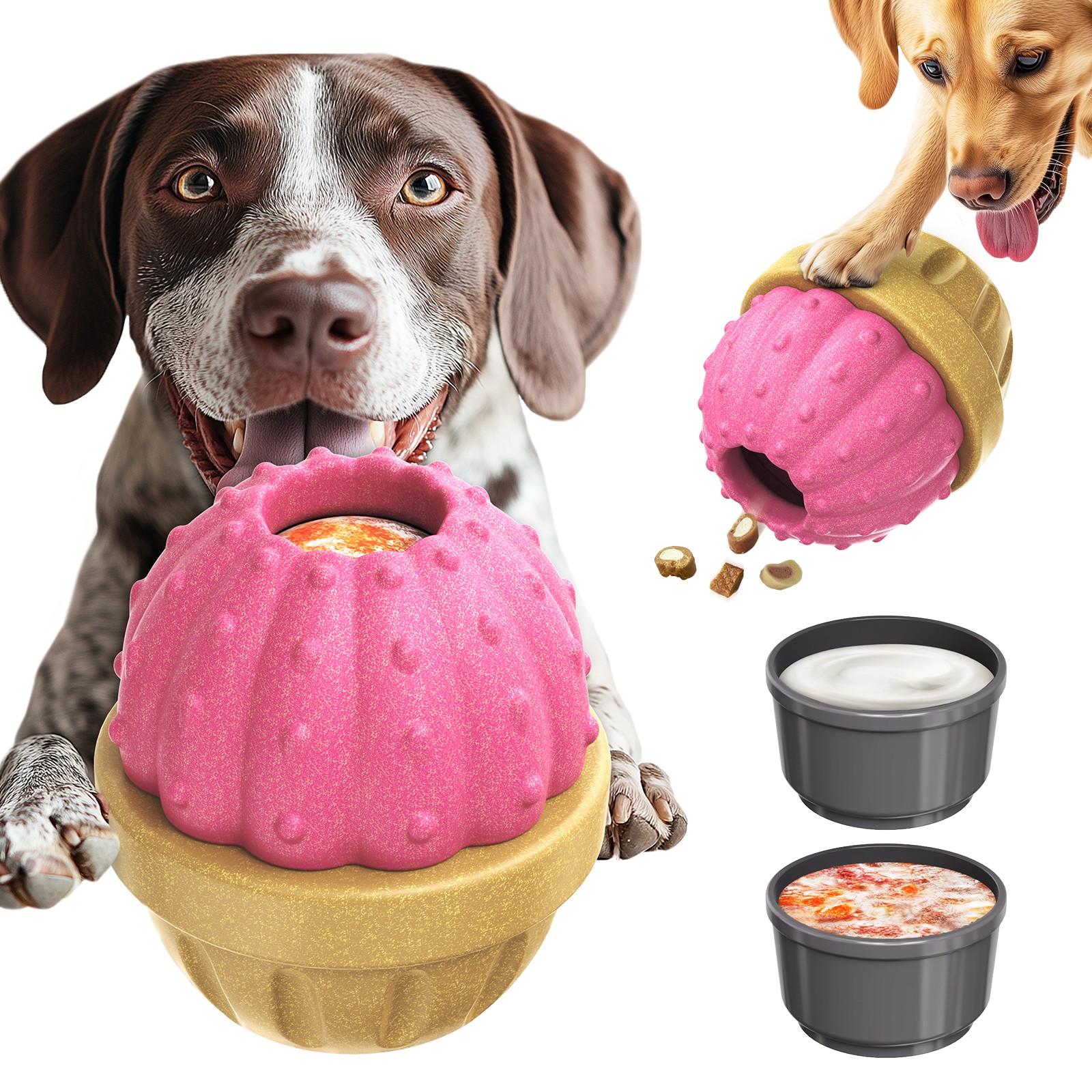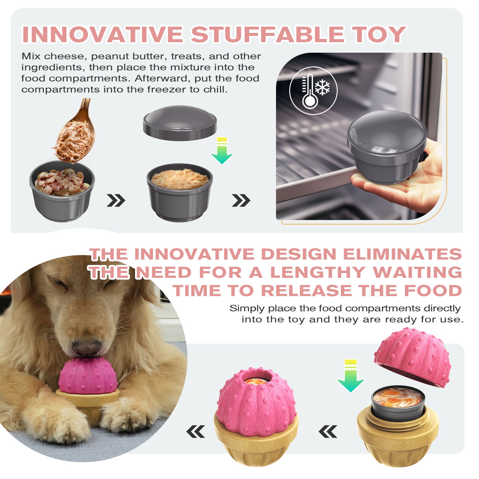 3[Frozen Licking Toy] Fill the food compartment with ingredients like meat paste, yogurt, pumpkin, meat chunks, or cheese, then cover it and freeze. After freezing, insert the food compartment into the toy for your dog to enjoy licking. This process helps expend excess energy and enrich your dog’s daily life;