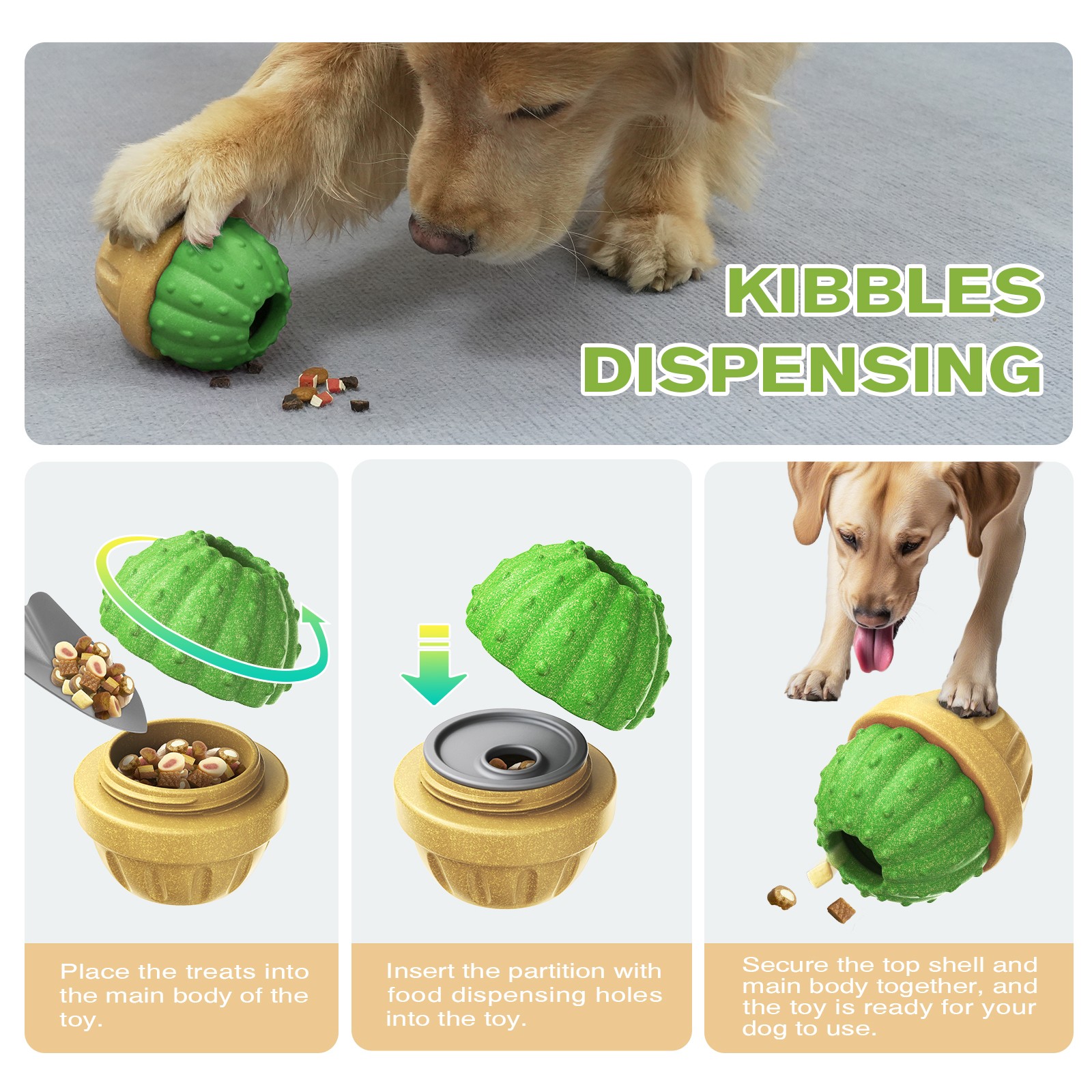 4[Food Dispensing Toy] Twist and open the toy’s top to insert pet kibble or jerky. You can add the included divider inside the toy to slow down the food dispensing rate. Your dog will roll the toy to release the treats. The toy supports pet snacks with a maximum size of 0.79 inches;