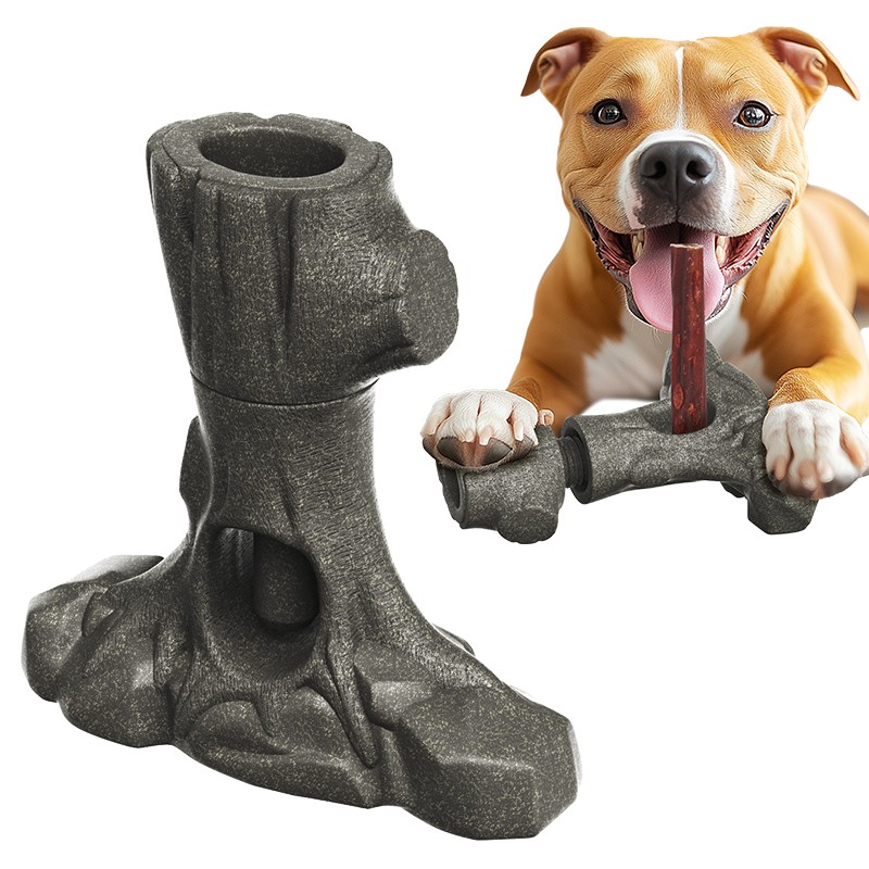 3 [Designed for Dogs’ Natural Instincts] The toy’s design resembles a stump. making it easy for your dog to comfortably hold the stand with its paws, allowing for easier chewing of bully sticks or stick-shaped treats;