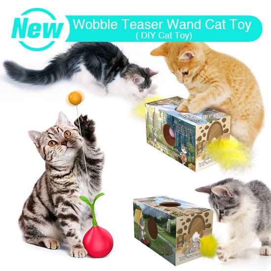 1 [2 in 1 Toy Set] This toy set includes a Wobble Teaser Wand and a DIY Cat Digging Box Toy;